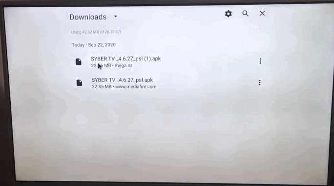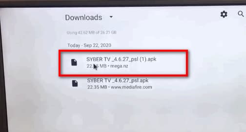- Double-cliquez sur votre fichier apk téléchargé pour l’installer. Dans notre cas, il s’agit de SyberTV apk.