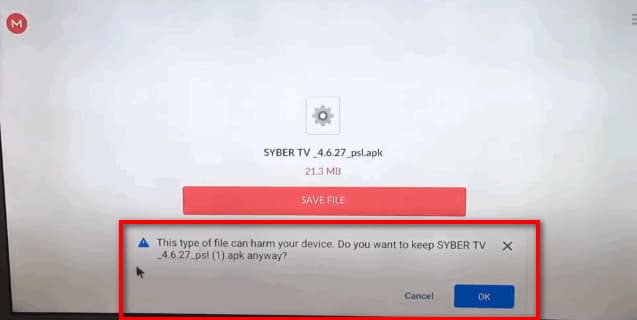 - Ensuite, une boîte d’avertissement s’affichera à l’écran en disant “Ce type de fichier peut endommager votre appareil”, cliquez sur.