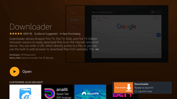 Étape 7: Recherchez une application appelée ” Downloader “, sélectionnez-la
