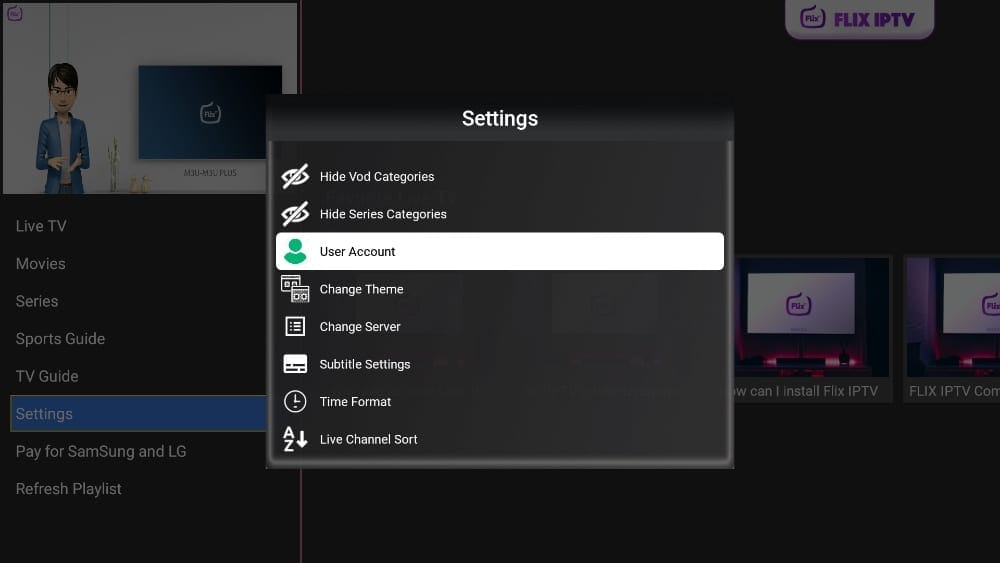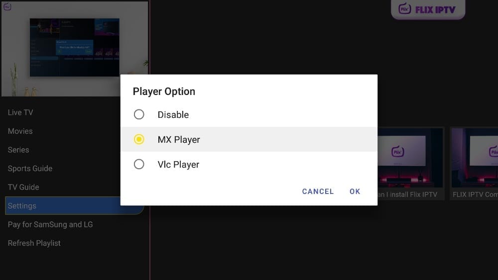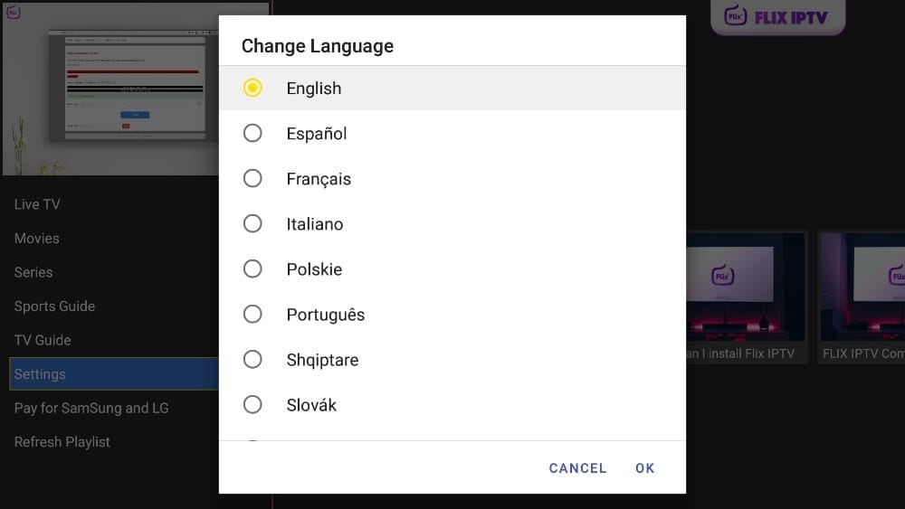 Flix IPTV offre une multitude de fonctionnalités utiles. Les fonctionnalités décrites ci-dessous peuvent être trouvées en allant dans Paramètres dans l’application.