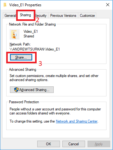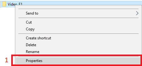 1. Ouvrez l’accès au dossier Video_E1 : Propriétés ⇒ Partage ⇒ Partager .