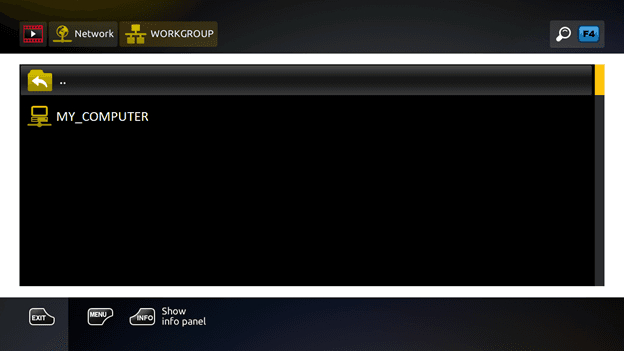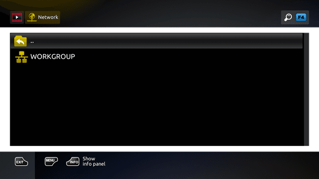 Les ressources réseau partagées (sous forme de raccourcis) sont affichées dans STB, dans le menu Multimédia d’accueil , conformément à l’architecture LAN réseau standard du système d’exploitation Windows: Réseau / Groupe de travail / Ordinateur / Dossier.