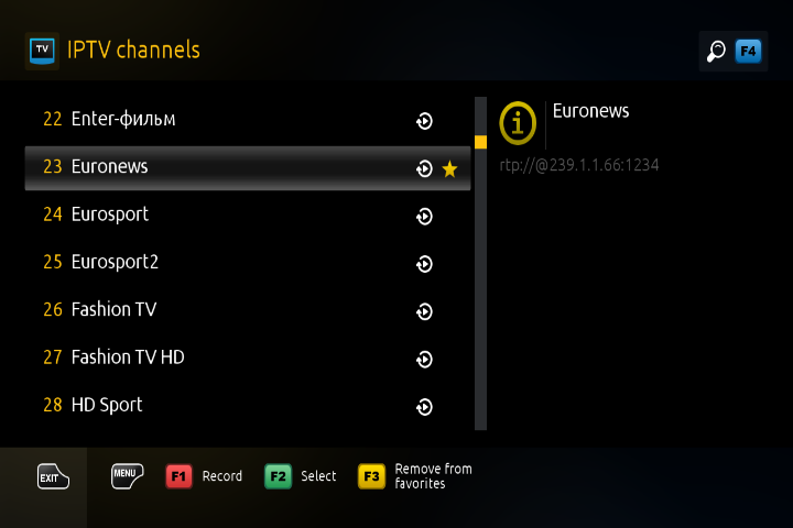 Appuyez sur F4 pour ouvrir la barre de recherche. Tapez des mots-clés pour trouver une chaîne en un instant.