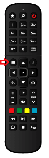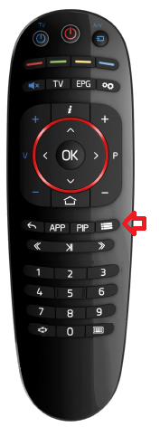 - Appuyez sur la touche Menu du RC et maintenez-la enfoncée (elle doit être dirigée directement vers l’avant du STB, où se trouve le récepteur IR).