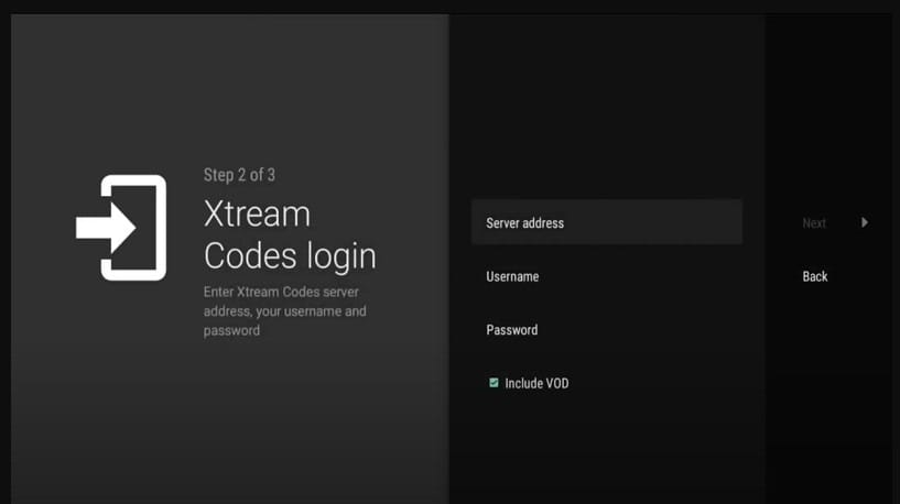 4. Utilisez vos identifiants xtream et laissez cocher “inclure VOD” si vous souhaitez inclure la VOD. Vos informations d’identification xtream sont incluses dans votre ligne m3u.