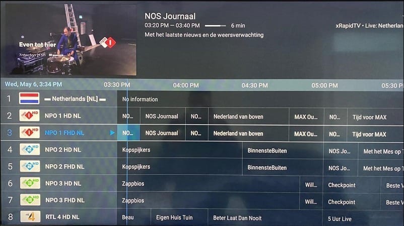 Exemple de votre écran EPG, dans le coin supérieur gauche, vous verrez un aperçu de la chaîne