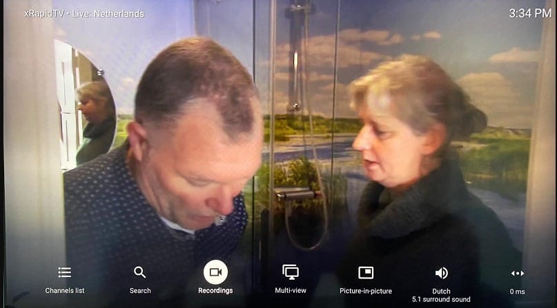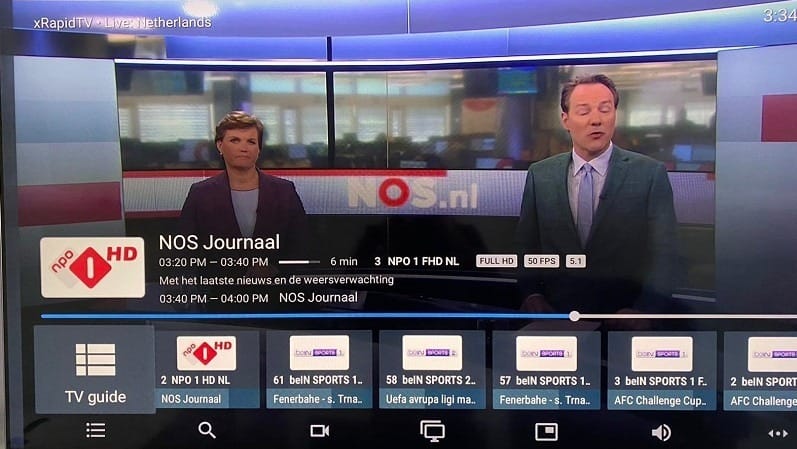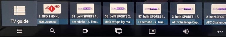 En regardant de plus près le menu ci-dessous avec les chaînes récemment ouvertes, sous le nom de la chaîne, dans la barre bleue, vous pourrez voir ce qui est en cours de lecture. À côté de cela, vous verrez tv-guide et plus d’options ci-dessous. Vérifiez plus loin pour une vue détaillée.