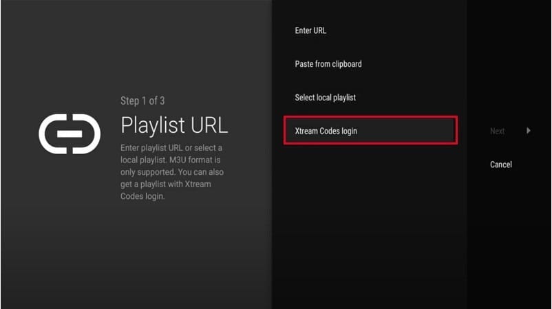 3. Choisissez “xtream-codes login” et cliquez sur “suivant”