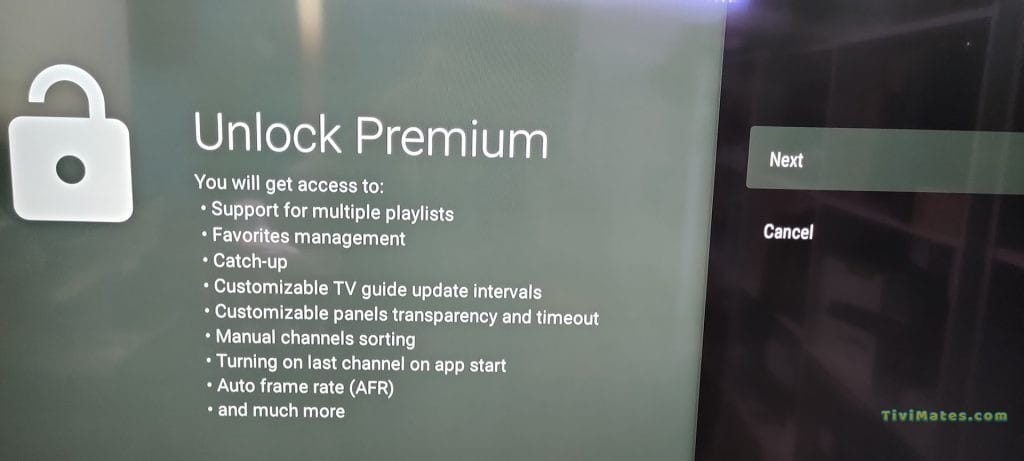 - Parmi les fonctionnalités de Tivimate IPTV Player. Est la possibilité d’avoir des paramètres de fréquence d’images, les fonctionnalités Premium vous permettent de définir la fréquence d’images AUTO pour rendre l’image encore meilleure pour votre téléviseur
