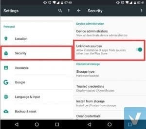 2. Vous devez maintenant activer l’ option « Sources inconnues » dans Paramètres> Sécurité et vérifier les sources inconnues