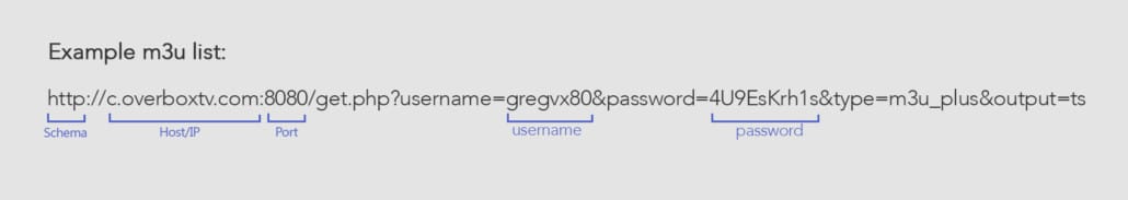 Ces détails doivent être fournis par le fournisseur IPTV au client, mais vous pouvez également extraire ces détails de M3u Link. (voir l’exemple du fournisseur IPTV overbox)