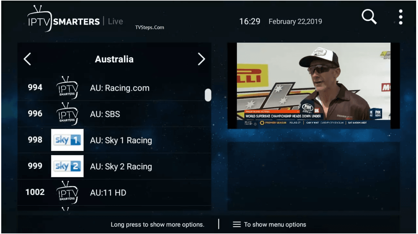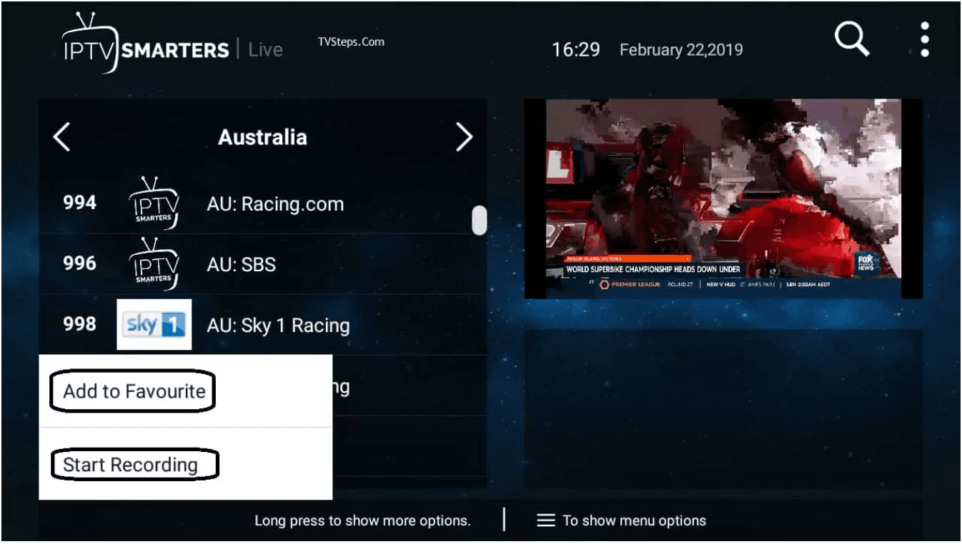 Appuyez longuement sur le nom de la chaîne et verrez des options telles que l’enregistrement et les favoris.