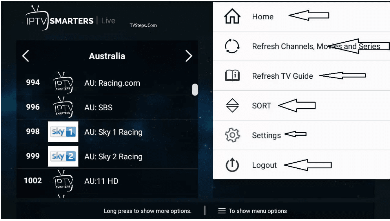 Vous pouvez appuyer sur le bouton de tabulation et accéder rapidement à quelques fonctionnalités intéressantes, notamment la mise à jour de l’EPG et de la liste.