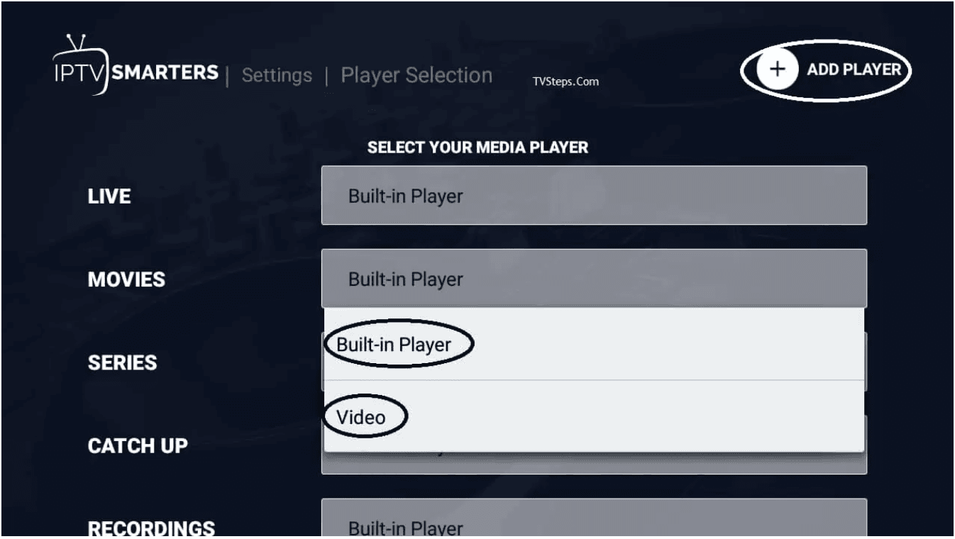 Le paramètre par défaut sera Lecteur intégré, mais vous pouvez le modifier si vous avez déjà sélectionné un lecteur en cliquant sur le bouton AJOUTER UN LECTEUR (découvrez dans les étapes suivantes).